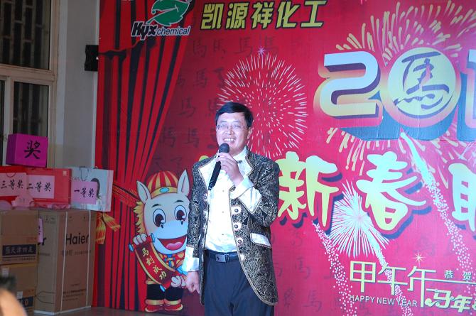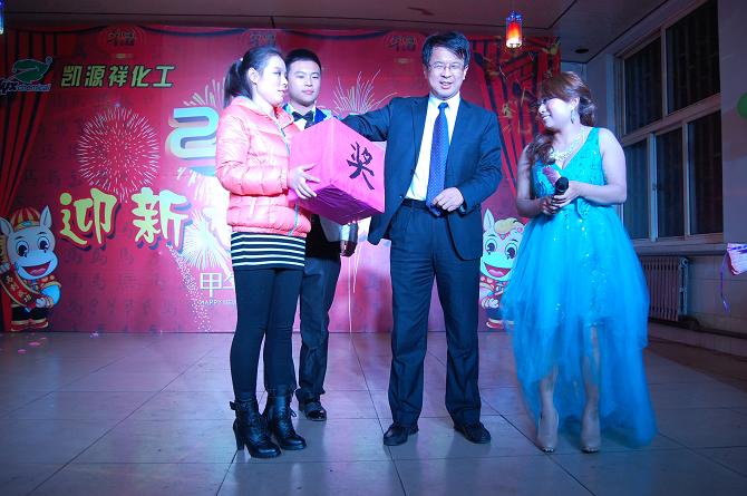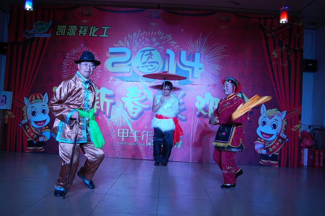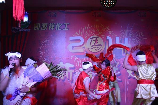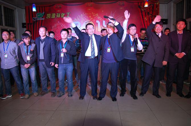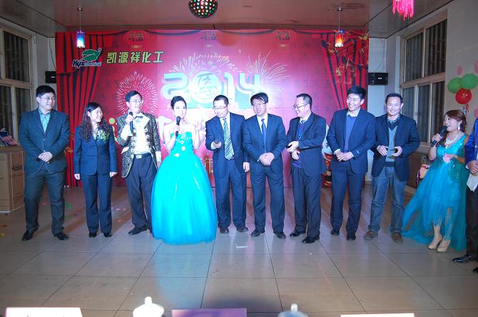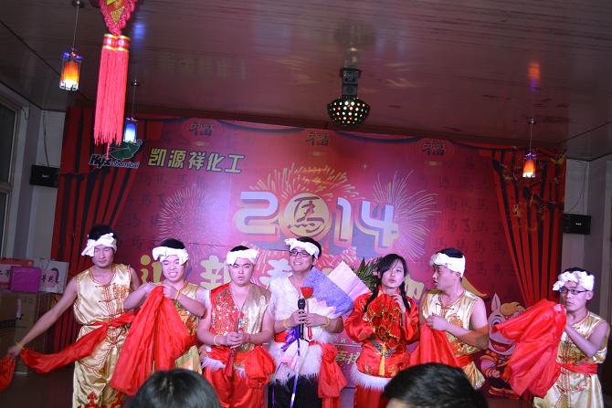 伴随着2013年的脚步,我们也即将迎来新的一年——2014年。你看!大街小巷都在为新春而忙碌准备着。在这辞旧迎新之际,我公司为感谢董事长及各位同事的支持,为庆祝大家2013年的战绩,在农历腊月二十这一天,董事长王玉亭先生与管委会成员以及一直在一线默默贡献的生产工人、常年在外奔波的销售将士们欢聚在青岛凯源祥化工有限公司,举办了一年一度的迎春晚会。