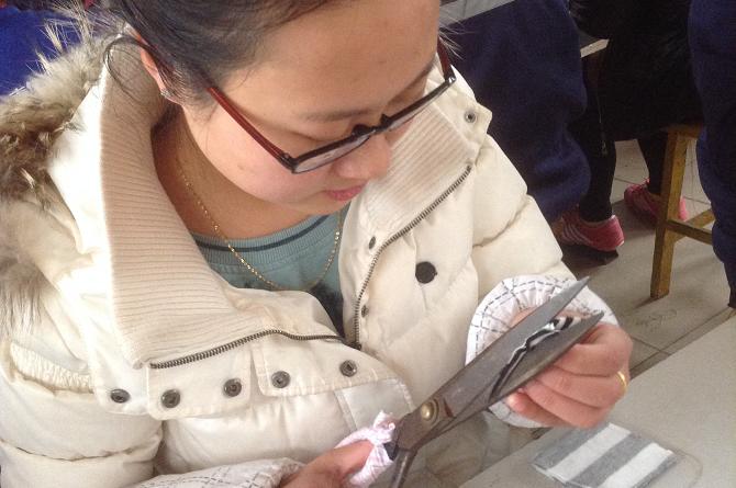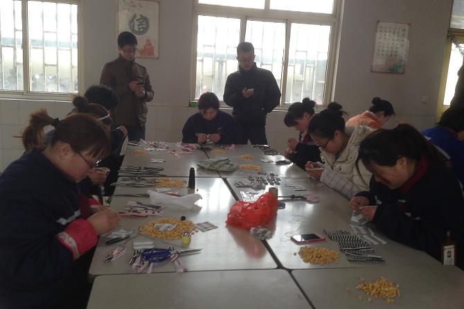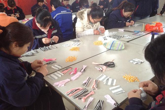 缝毽子开始啦!你看各参赛选手都自备了剪刀与针,大家都在那认真地挑选布块并为比赛而准备着。随着裁判的一声“预备……开始!”,大家都拿起针线开始动起来了,不知道是因为天气的原因,还是选手紧张了,你看,有几位选手拿着针,手不断地在抖动,8分39秒!第一个毽子诞生了,于春华激动地舞动着手里的毽子、欢呼着!其他的选手就更加紧张了,有的拿着玉米粒手不停地颤抖着,玉米粒大部分又掉了下去,就这样一会儿大家接二连三地分别完成了各自缝制的毽子。本次游戏我们采取的是质量第一、时间第二的原则。可最终会花落谁家呢?紧接着由评委张绍飞厂长、吴桂燕厂长、张鹏科长对大家的杰作进行了质量检验,再结合时间为大家评出了一、二、三等奖各一名,分别是刘雪梅、张玲、孙瑞芹。在大家为获奖者送上最热烈的掌声与衷心地祝福中活动圆满结束了。